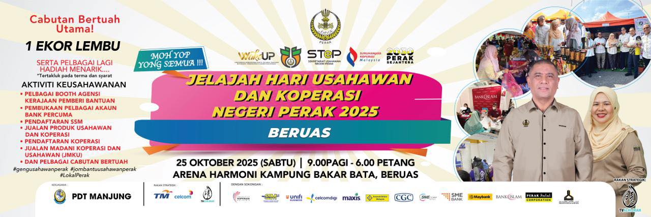 « All Program-program STeP Jelajah Hari Usahawan dan Koperasi Peringkat Negeri Perak 2025 – Beruas October 25, 2025 @ 9:00 am - 6:00 pm Arena Harmoni Arena Harmoni, Kampung Bakar Bata Beruas, Perak 32700 Malaysia + Google Map Add to calendar Google Calendar iCalendar Outlook 365 Outlook Live Program Jom KoPI - STeP x TEKUN […]